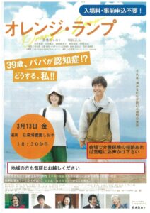 映画「オレンジランプ」上映会を開催します(入場料・事前申込不要! 地域の方も気軽にお越しください)<NEW> 2026.02.25 〇日時:令和8年3月13日(金) 午後6時開場、6時30分上映予定 〇場所:日高博愛園しおや(御坊市塩屋町北塩屋1246) 〇お問い合わせ先:日高博愛園しおや 0738-52-7300 担当 中野まで 映画「オレンジランプ」ちらし Tweet Share Hatena Pocket RSS feedly Pin it 和歌山県「あいサポート企業」に認定されました(R7.10.20) 前の記事